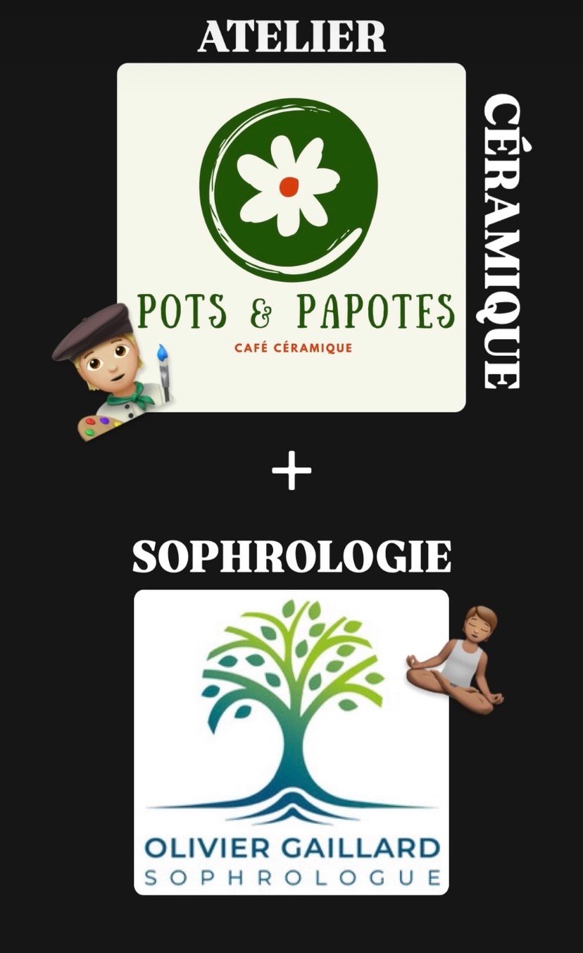 ATELIER SOPHRO-CERAMIQUE le mercredi 9 juillet 2025 : A St PERAY chez Pots et Papottes, de 17h à 20h. Tarif : 40€ par personne (matériel compris)